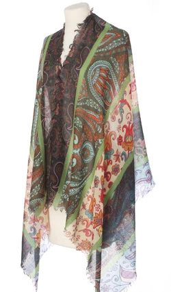 Piękny elegancki duży szal Laura Verdiani wykonany z cienko tkanej lekkiej wełny najwyższej jakości. Szal jest lekki, całoroczny. Cyfrowy nadruk.