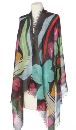 Piękny elegancki duży szal Laura Verdiani wykonany z cienko tkanej lekkiej wełny najwyższej jakości. Szal jest lekki, całoroczny. Cyfrowy nadruk.