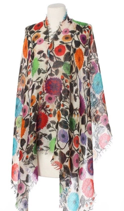 Piękny elegancki duży szal Laura Verdiani wykonany z cienko tkanej lekkiej wełny najwyższej jakości. Szal jest lekki, całoroczny. Cyfrowy nadruk.