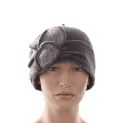 Czapka ITALIA FRASCONI Wełna Kwiat popiel melanż