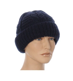 Włoska zimowa ciepła czapka klasyczna wywijana z wełny granatowa