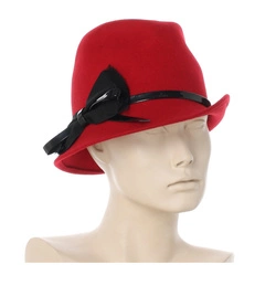 Wełniany filcowy kapelusz damski z asymetrycznym rondem i kokardą czerwony
