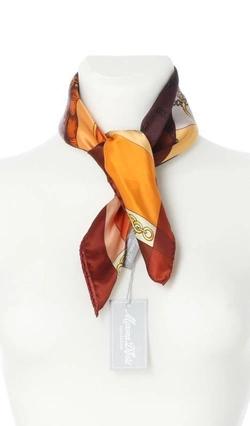 Włoska jedwabna mała gawroszka - apaszka Marina D'Este jako uzupełnienie stylizacji. Świetna do koszuli lub garsonki czy swetra.