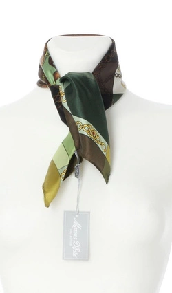 Włoska Elegancka mała Apaszka Jedwabna zielona Łańcuszki 49x49 Marina D'Este