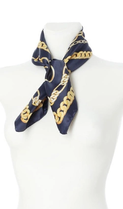 Elegancka Włoska mała Apaszka 60x60cm Satynowa w łańcuchy granatowa