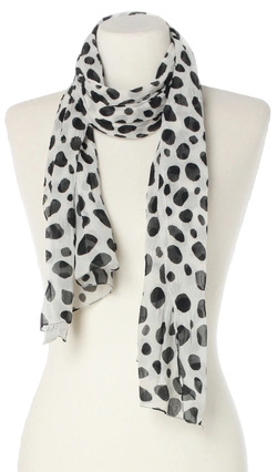Lekki szalik włoski biało czarny w grochy 35x160cm kreszowany na wiosnę lato
