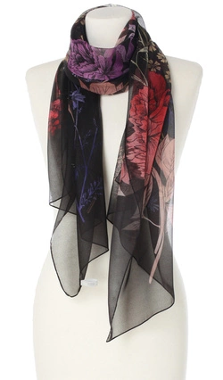 Włoski duży lekki szal szalik czarny 70x180cm do sukienki jak mgiełka kwiatowy na elegancki prezent