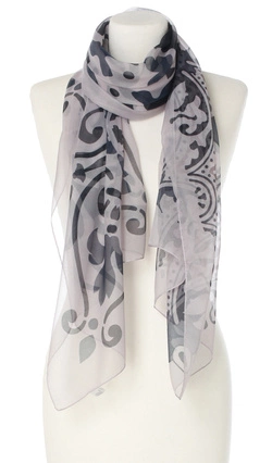 Włoski duży lekki szal szalik szary 70x180cm do sukienki jak mgiełka wzorzysty na elegancki prezent