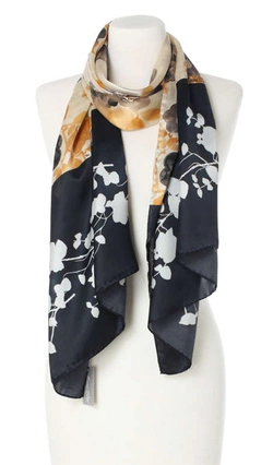 Włoski jedwabny duży szalik Marina D'Este. Wykonany z najwyższej jakości satynowego jedwabiu - pięknie się układa, jest lejący, plastyczny, nie mnie się. Ręcznie wykończony.