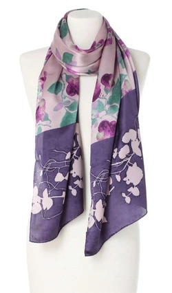 Włoski jedwabny duży szal do sukienki Marina D'Este 70x180cm włoski jedwab silk seta Kwiaty różowy