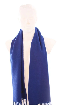 Wełniany gładki szal męski unisex 100% wełna LAMBSWOOL 30x140cm kolor niebieski szafirowy