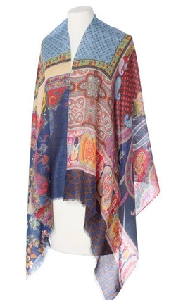 Całoroczny piękny lekki delikatny duży szal Laura Verdiani Moda Italiana wykonany z cienko tkanej lekkiej wełny wysokiej jakości z dodatkiem modalu. Cyfrowy nadruk - Digital Print.