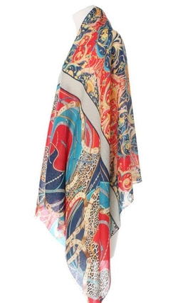Całoroczny piękny lekki delikatny duży szal Laura Verdiani Moda Italiana wykonany z cienko tkanej lekkiej wełny wysokiej jakości z dodatkiem modalu. Cyfrowy nadruk - Digital Print.