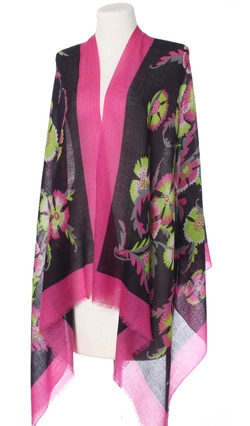 Piękny lekki delikatny szal Laura Verdiani wykonany z cienko tkanej lekkiej wełny wysokiej jakości z dodatkiem modalu. Cyfrowy nadruk - Digital Print.