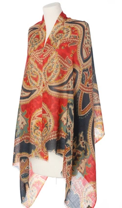 Piękny lekki delikatny szal Laura Verdiani wykonany z cienko tkanej lekkiej wełny wysokiej jakości z dodatkiem jedwabiu. Cyfrowy nadruk - Digital Print.