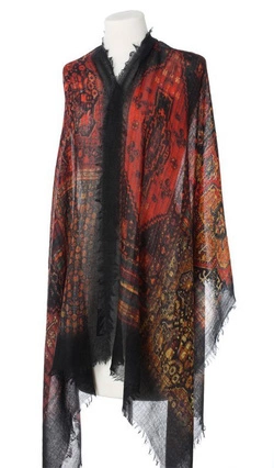 Piękny elegancki duży szal Laura Verdiani wykonany z cienko tkanej lekkiej wełny najwyższej jakości. Cyfrowy nadruk.