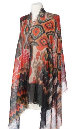 Piękny elegancki duży szal Laura Verdiani wykonany z cienko tkanej lekkiej wełny najwyższej jakości. Cyfrowy nadruk.