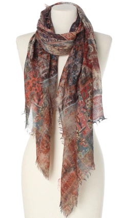 Piękny elegancki duży szal Laura Verdiani wykonany z cienko tkanej lekkiej wełny najwyższej jakości. Szal jest lekki, całoroczny. Cyfrowy nadruk.