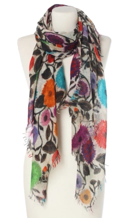 Piękny elegancki duży szal Laura Verdiani wykonany z cienko tkanej lekkiej wełny najwyższej jakości. Szal jest lekki, całoroczny. Cyfrowy nadruk.