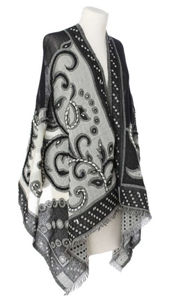 Elegancki duży szal Laura Verdiani - moda italiana. Wykonany z wełny wysokiej jakości. Szal ręcznie wyszywany cekinami, koraliczkami, haftami. Idealny dodatek na wielkie wyjścia i jako piękny prezent dla bardzo wymagającej kobiety :-) ... Robi ogromne wrażenie..