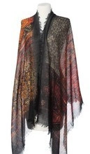 Kaszmirowy Szal Szalik Laura Verdiani 70x180 Wełna szary w kwiaty