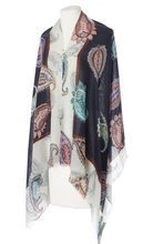 Elegancki Szal Laura Verdiani 70x180 Wełna Modal Paisley granatowy